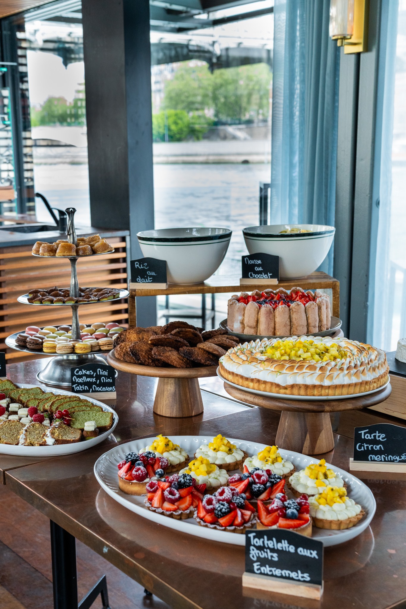 Buffet à volonté offrant une large variété de produits salés et sucrés de qualité avec une sélection de produits français, bio et de circuit court.